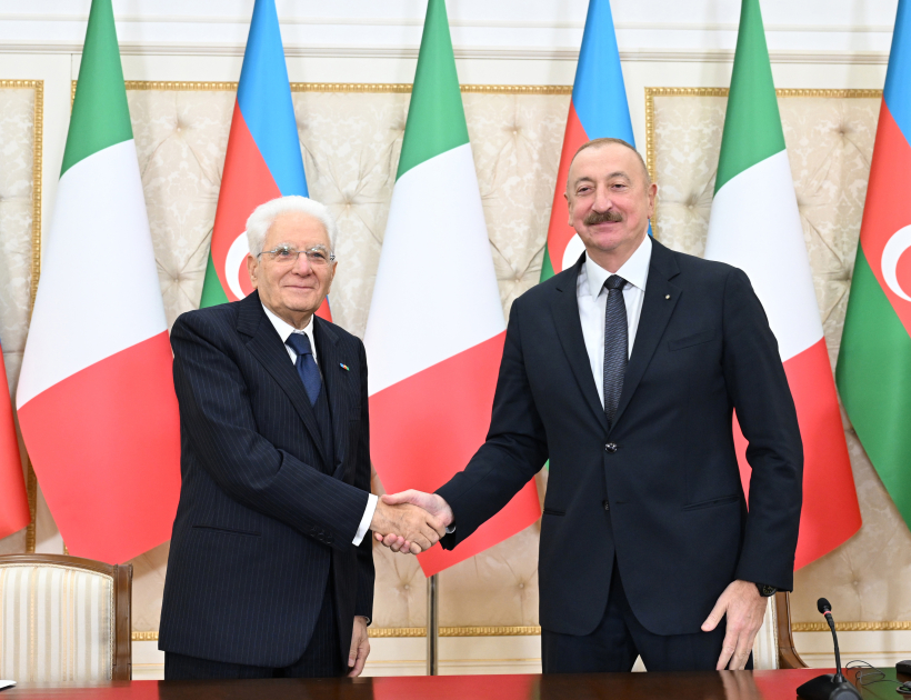 Hazırda Azərbaycan Prezidenti İlham Əliyev və İtaliya Prezidenti Sercio Mattarella mətbuata bəyanatlarla çıxış edirlər.