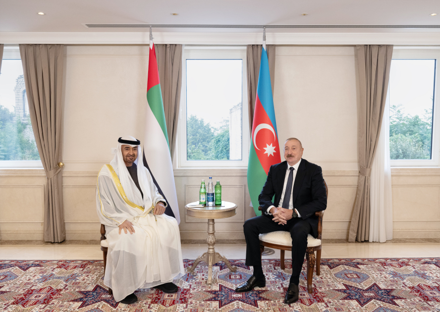 Bu gün Şuşada Azərbaycan Prezidenti İlham Əliyevin Birləşmiş Ərəb Əmirliklərinin Prezidenti Şeyx Məhəmməd bin Zayed Al Nəhyan ilə təkbətək görüşü olub.
