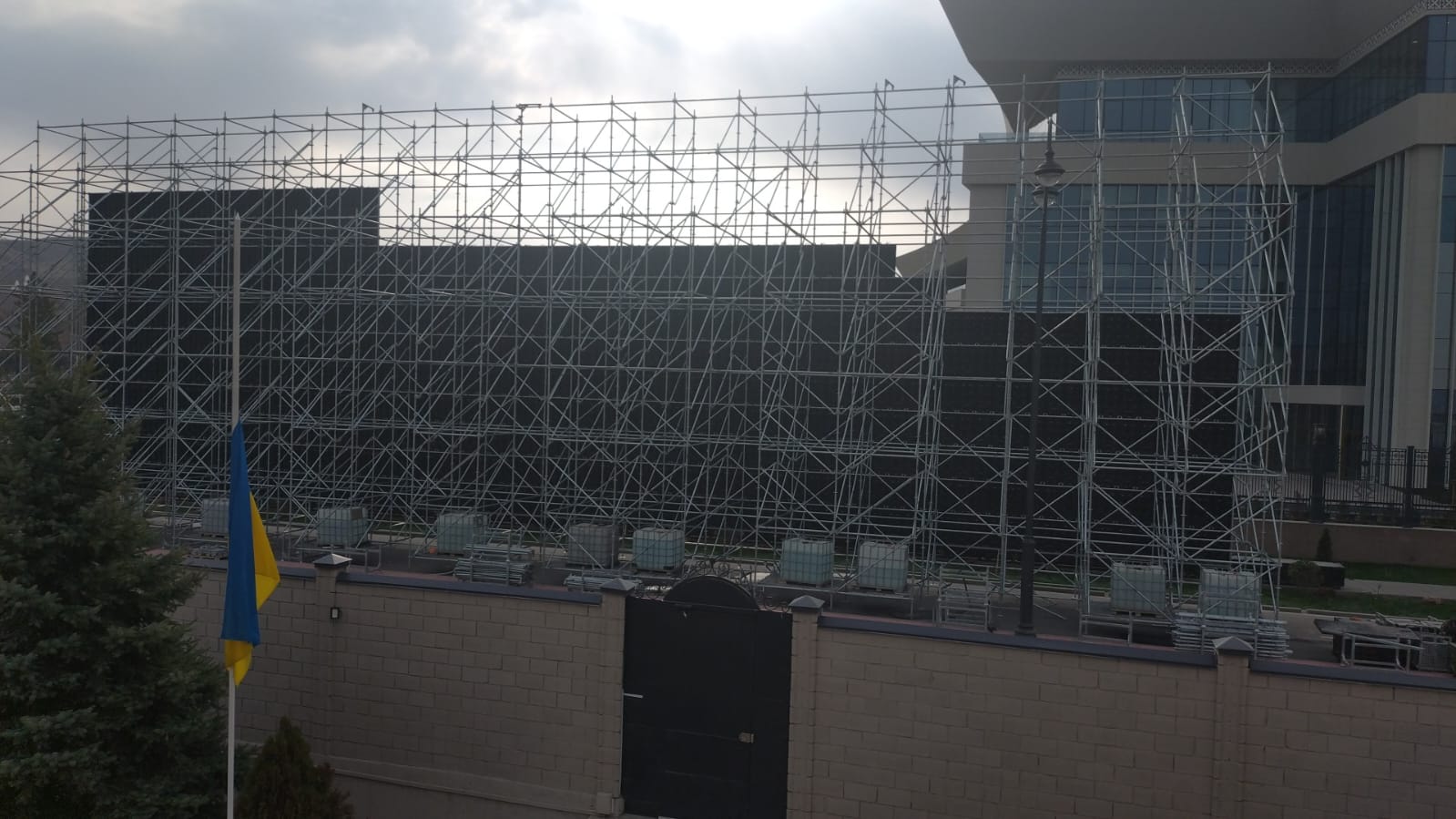 Portal yazır ki, sözügedən iqamətgahın yaxınlığında təqribən 200 metr məsafədə nəhəng ekran quraşdırılıb.