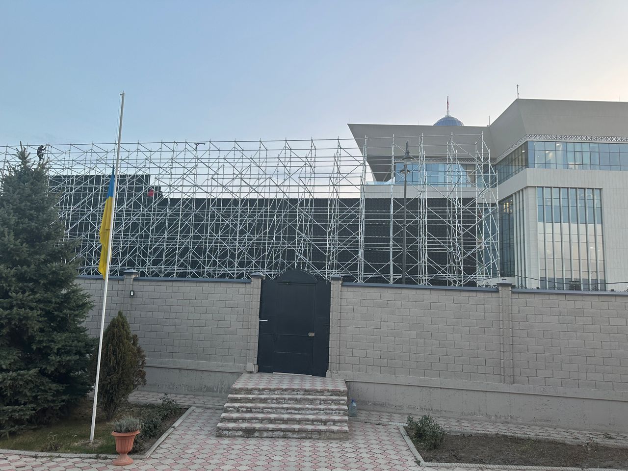 İddialara görə, ekranın quraşdırılmasına səbəb Putinin səfəri zamanı Ukrayna səfirliyinin binasını gizlətmək olub. Belə ki, Ukraynanın diplomatik nümayəndəliyi iqamətgahın yaxınlığında yerləşir.