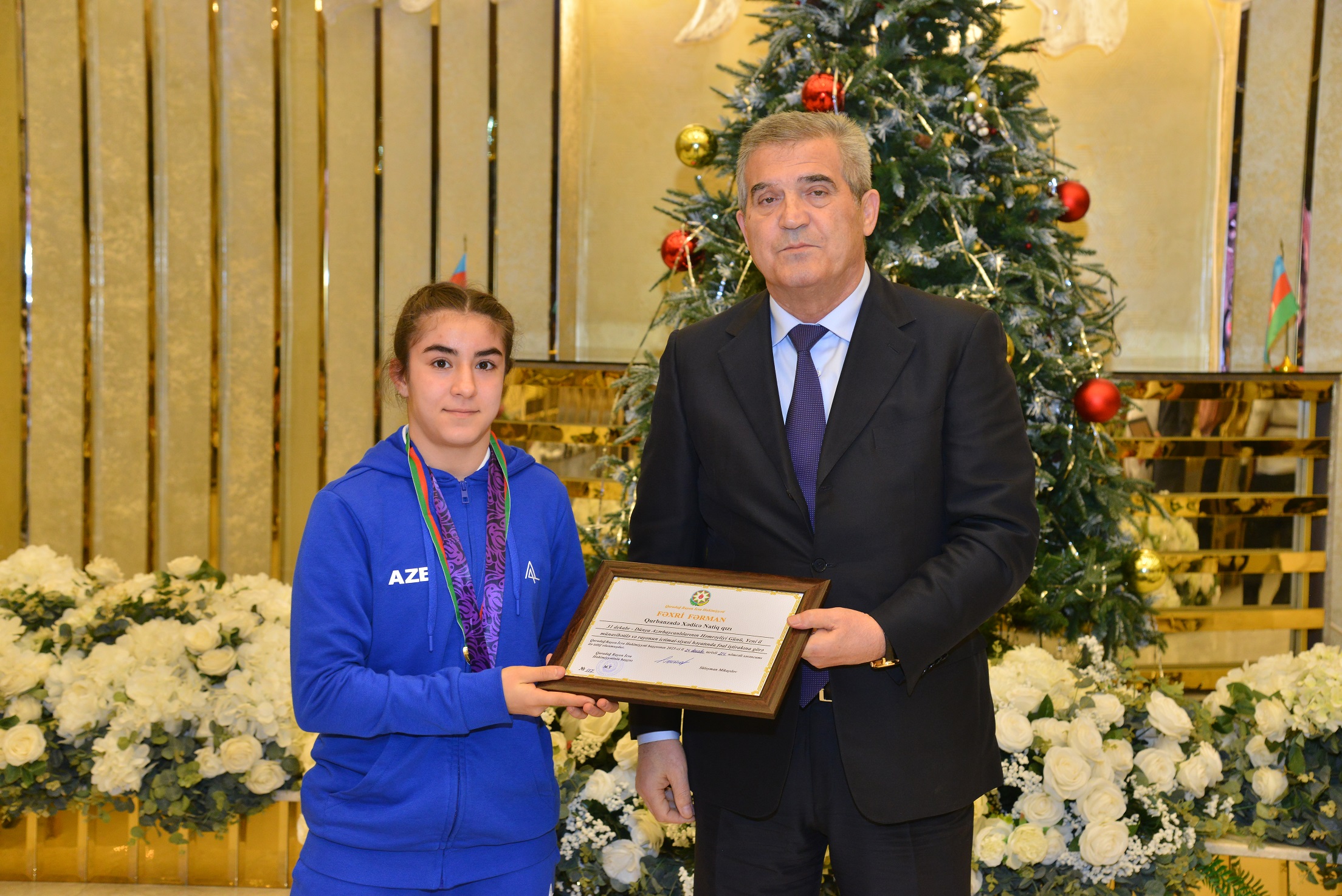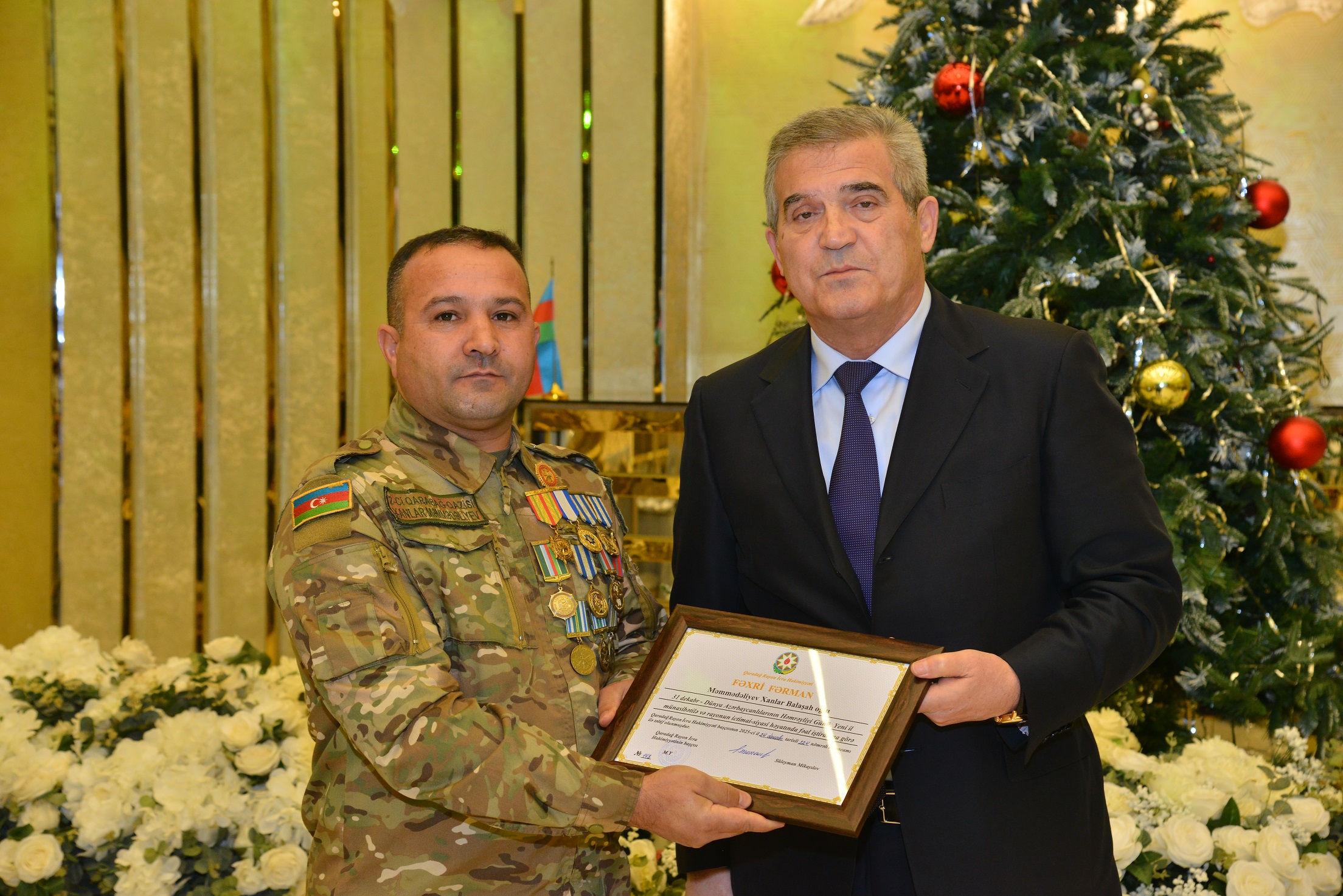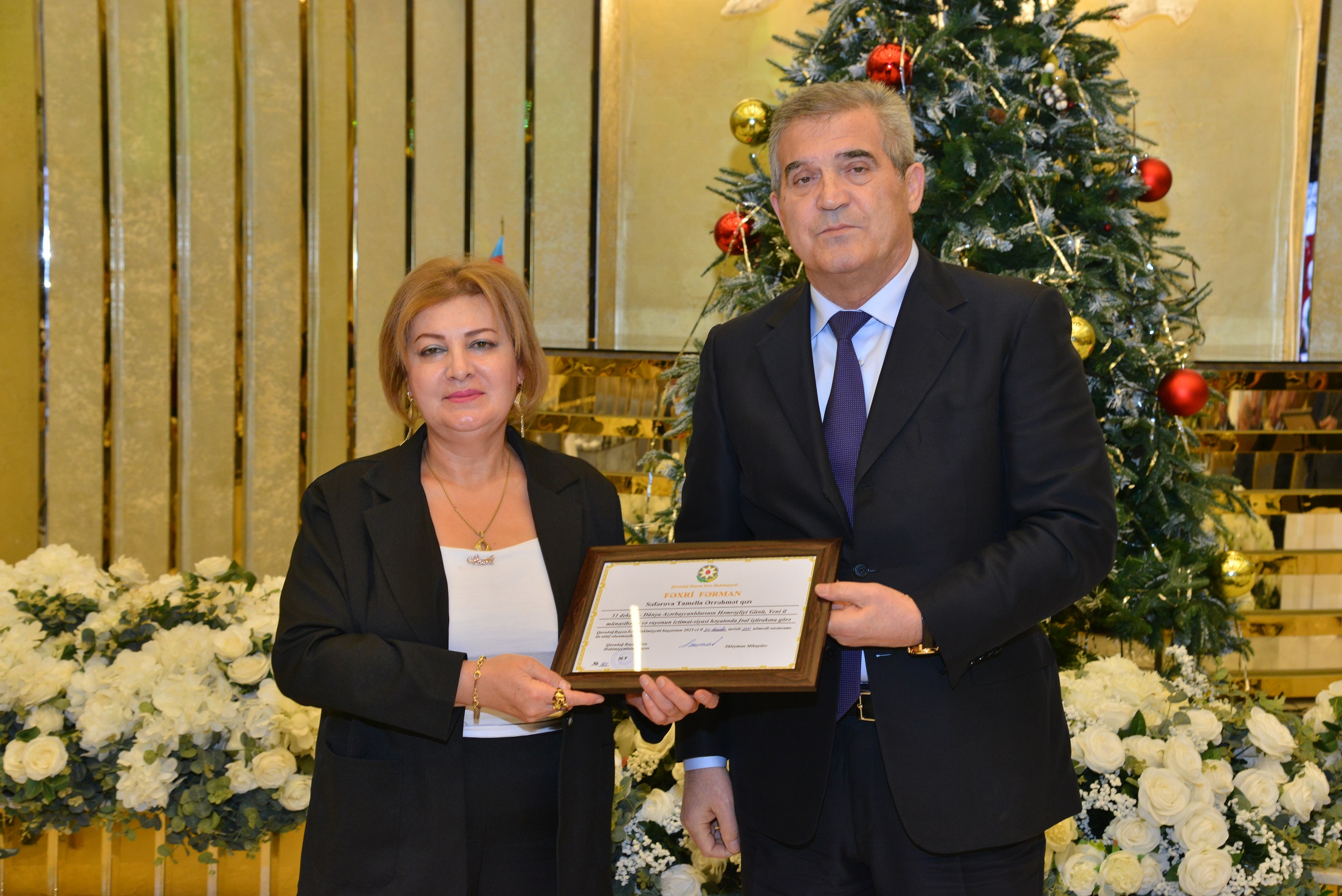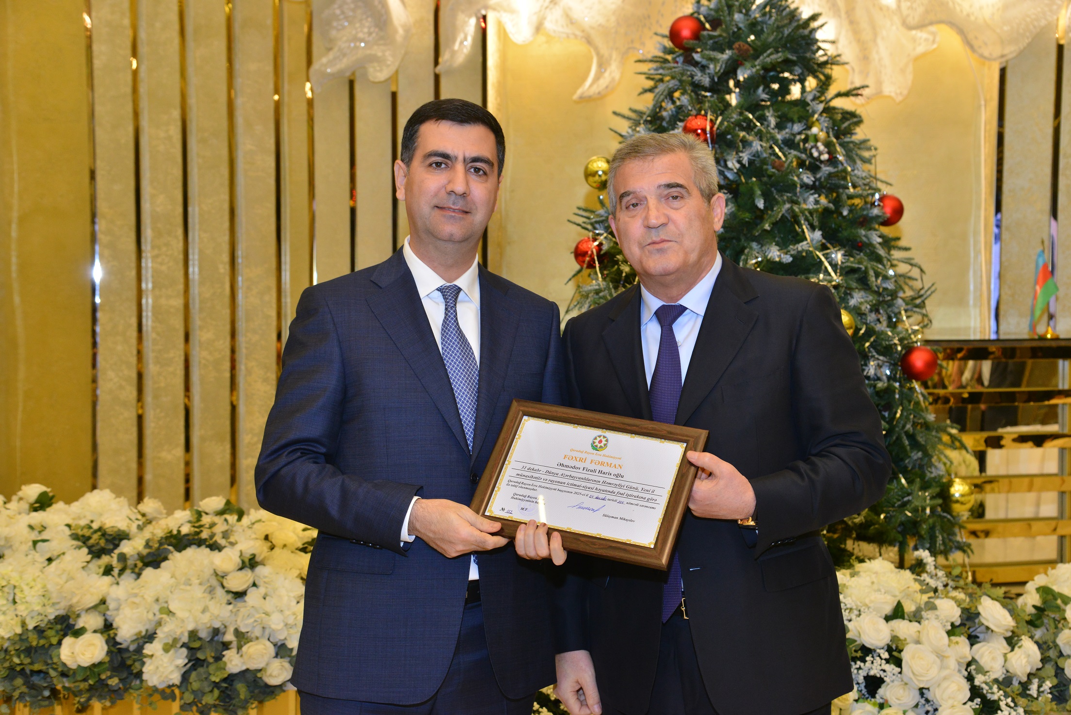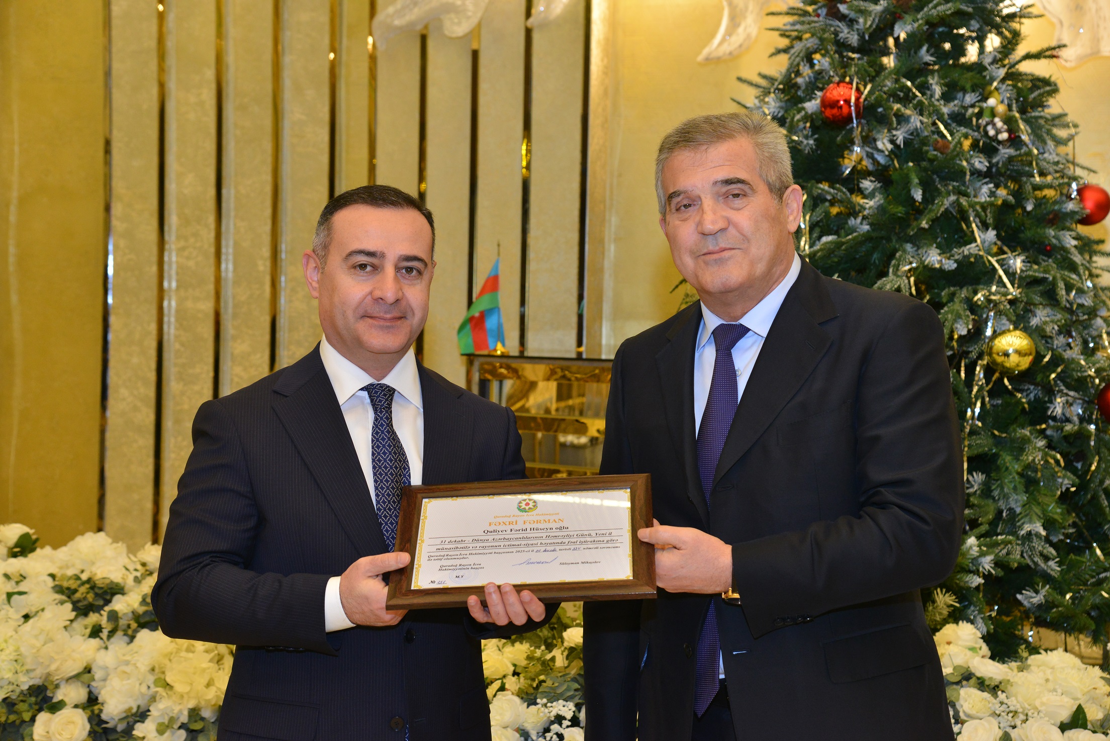 Daha sonra Qaradağ Rayon İcra Hakimiyyəti başçısı Süleyman Mikayılov tərəfindən rayonun ictimai-siyasi həyatında öz fəallığı ilə fərqlənən 40 nəfərə fəxri fərman və dəyərli hədiyyələr təqdim edilib.