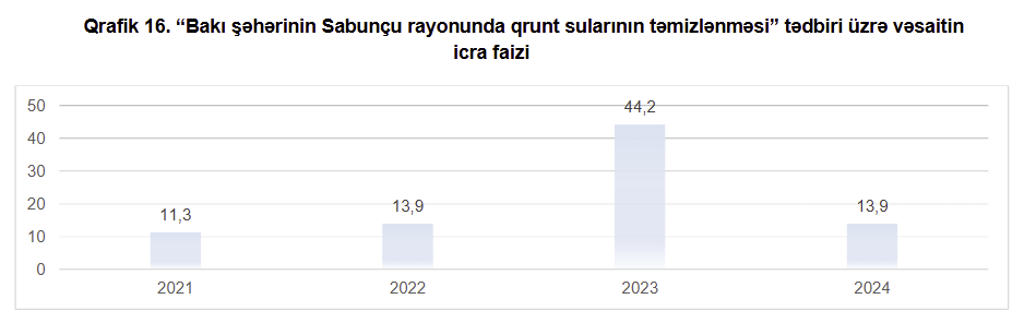 2021-2024-cü illərdə “Bakı şəhərinin Sabunçu rayonunda qrunt sularının təmizlənməsi” tədbiri üzrə büdcə xərcləri proqnozla müqayisədə az icra edilib.