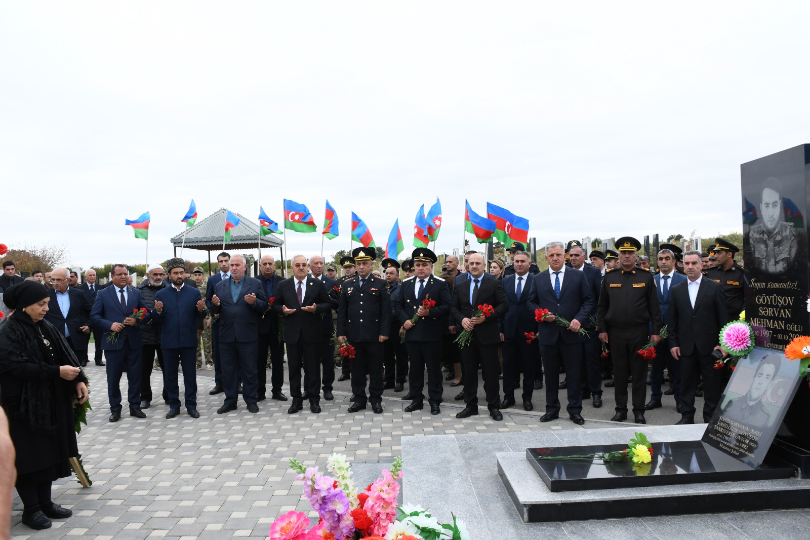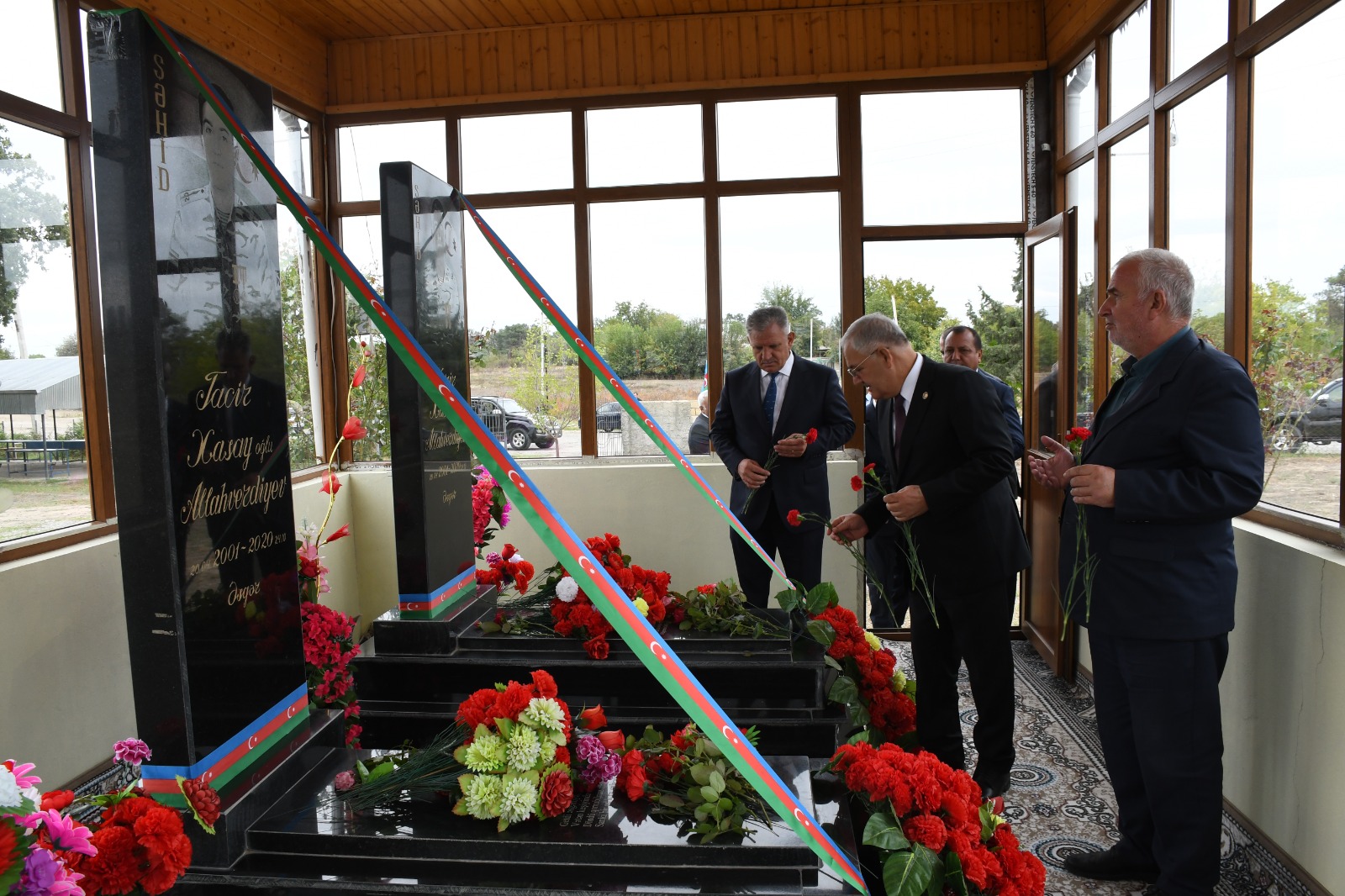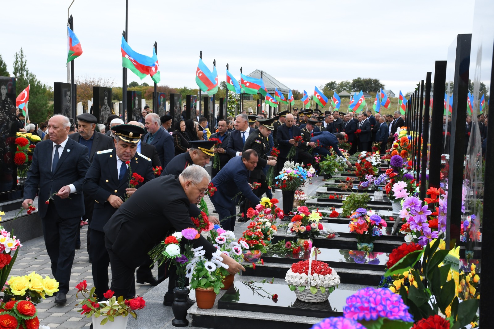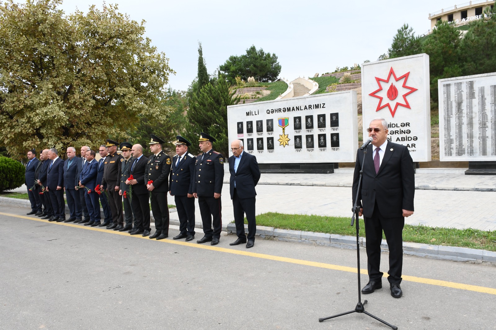 Sonra tədbir iştirakçıları Şəhidlər Abidə Kompleksində Birinci Qarabağ Müharibəsi Şəhidlərinin xatirəsinə ucaldılmış lövhənin önünə gül dəstələri düzərək onları yad edib, ruhlarına dualar oxuyublar.