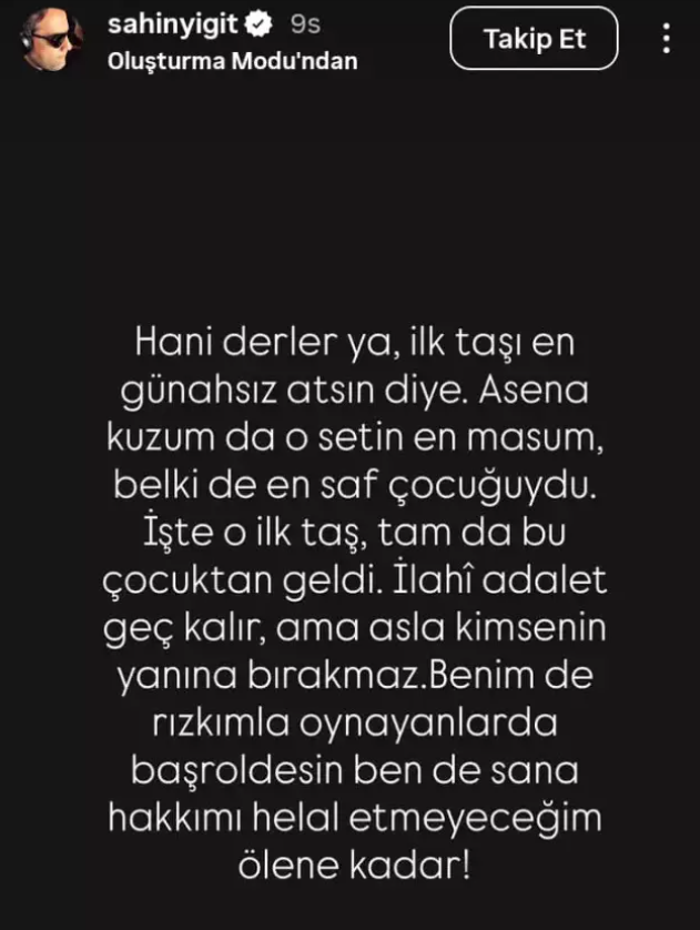 Yiğit Evrim Akının “Ölənə qədər səni bağışlamayacam” deyərək haqqına girdiyini iddia edib.