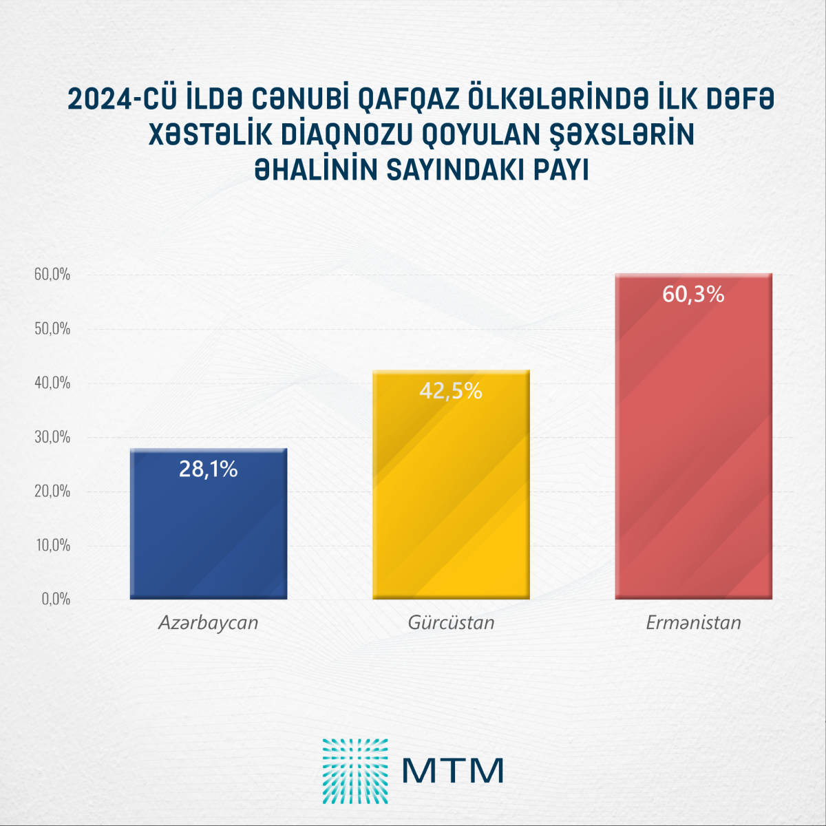 Rəsmi rəqəmlər əsasında aparılan təhlilə görə, ötən il Ermənistanda əhalinin 60,3%-nə ilk dəfə xəstəlik diaqnozu qoyulub. Gürcüstanda bu rəqəm 42,5% təşkil edib.