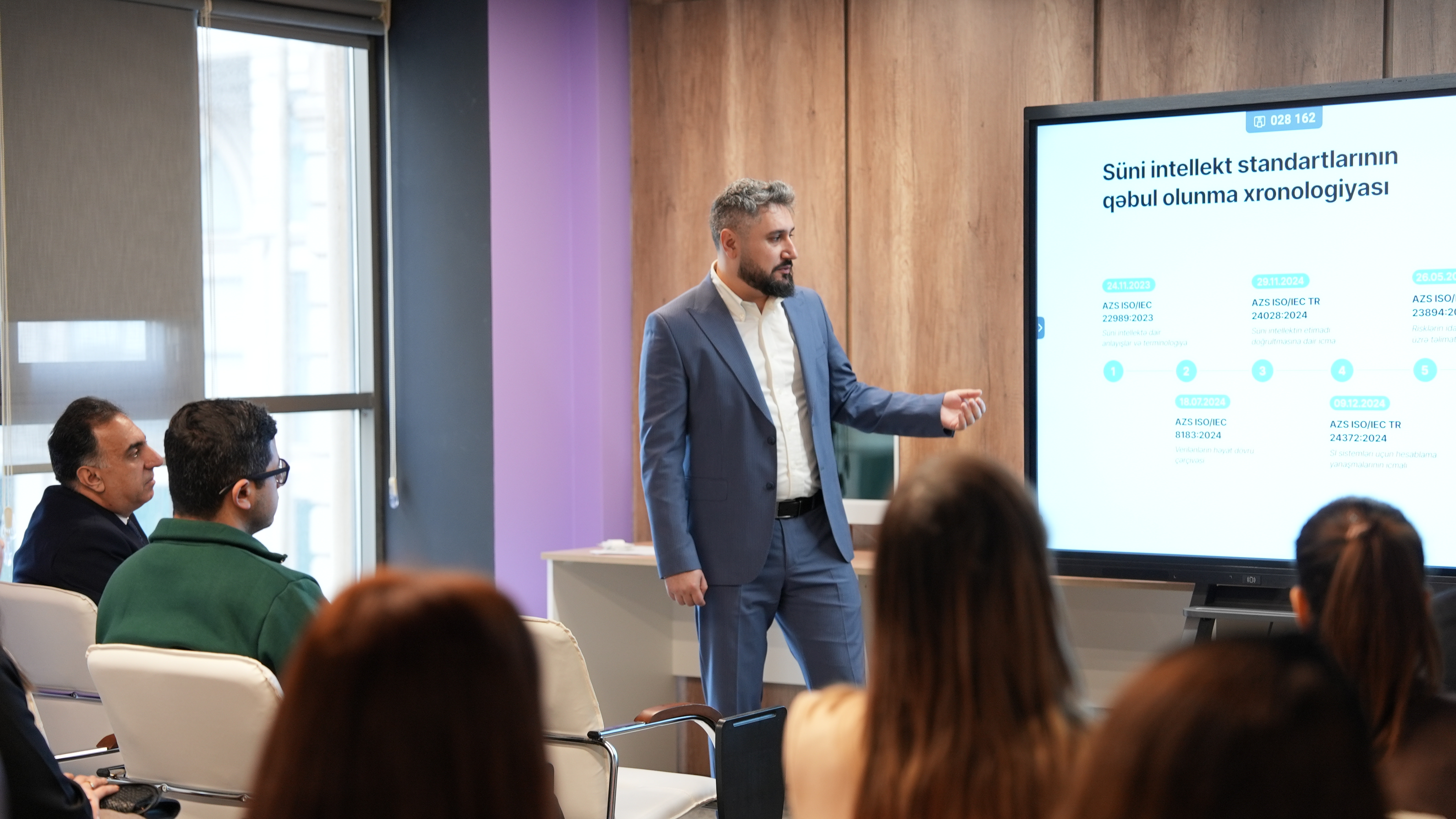 Tədbir çərçivəsində Azərbaycanda indiyədək qəbul edilmiş 8 süni intellekt dövlət standartı barədə geniş təqdimat nümayiş etdirilərək qeyd olunub ki, sözügedən standartlar süni intellekt sistemlərində terminologiyanın vahidləşdirilməsi, risklərin idarəolunması, idarəetmə və etibarlılıq mexanizmlərinin təkmilləşdirilməsi kimi mühüm istiqamətləri əhatə edir. Bu standartlar ölkədə süni intellekt ekosisteminin düzgün, təhlükəsiz və beynəlxalq tələblərə uyğun şəkildə formalaşdırılması üçün əsas baza rolunu oynayır.