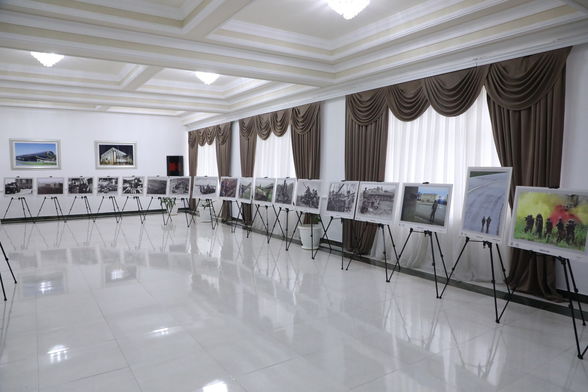 Daha sonra Mədəniyyət Nazirliyinin və Azərbaycan Fotoqraflar Birliyinin təşkilatçılığı ilə keçirilən “Zəfərin ruhu” adlı fotosərgiyə baxış keçirilib. Qeyd edək ki, sərgidə nümayiş olunan əsərlər Azərbaycan Ordusunun şücaətini, xalqımıza bəxş etdiyi əbədi Zəfər ruhunu, həmçinin işğaldan azad edilmiş torpaqlarımızda aparılan böyük quruculuq və dirçəliş prosesini, o cümlədən Qarabağ təbiətinin füsunkar gözəlliklərini rəssam və fotoqrafların gözü ilə əks etdirir.