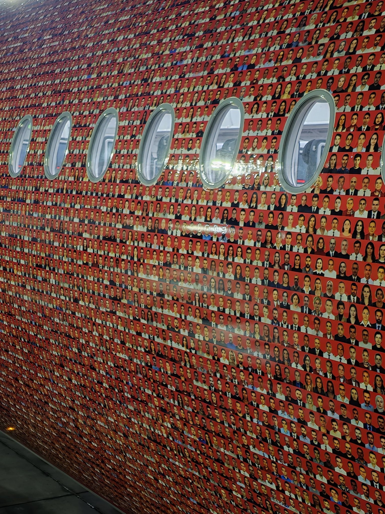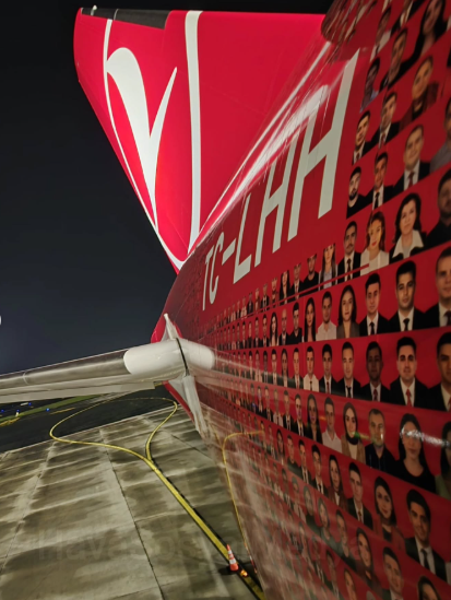 “Qafqazinfo” Türkiyə mediasına istinadən xəbər verir ki, təyyarənin üzərində şirkətin aktiv və təqaüdə çıxmış işçiləri ilə birgə ümumilikdə 100 min nəfərin fotosu yer alıb.
