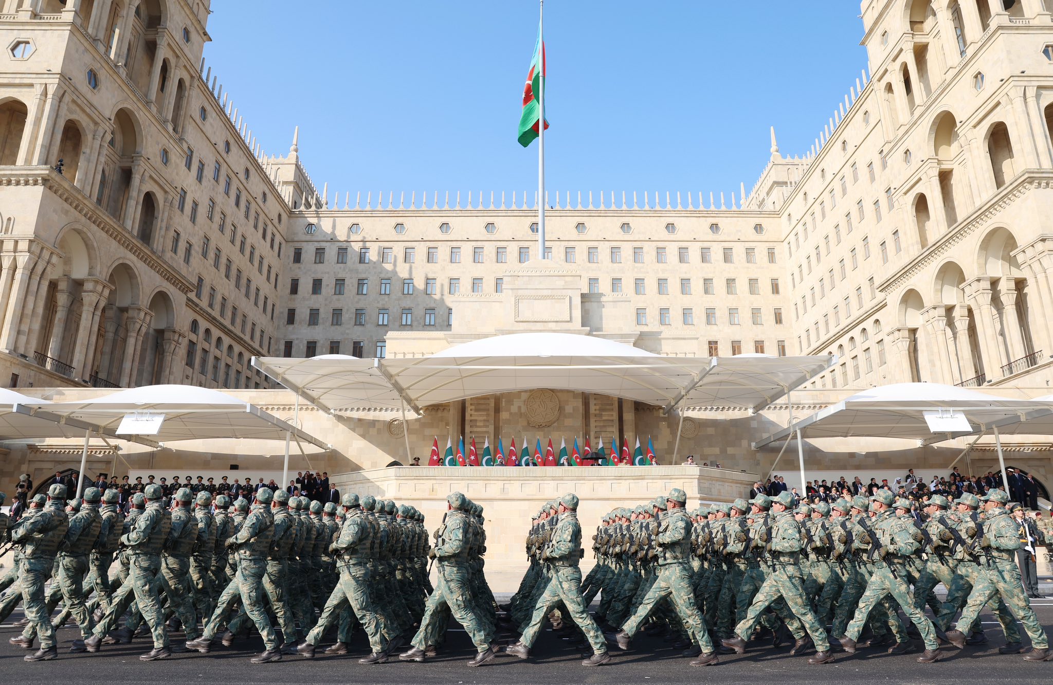 Türkiyə Prezidenti Rəcəb Tayyib Ərdoğanın Administrasiyası Bakıda keçirilən hərbi paraddan görüntülər paylaşıb.