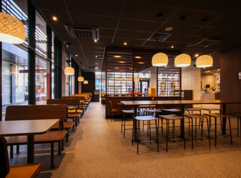 Restoran “MakAvto” zonası olan ayrıca bir binada yerləşir ki, bu da qonaqlara sifarişlərini daha sürətli və rahat şəkildə almağa imkan verir. İnteryer “A Touch of Archery” konsepsiyasında işlənib hazırlanıb. Burada zərif xətlərin və dinamik çalarların ahəngi yüngül və rahat atmosfer yaradır.