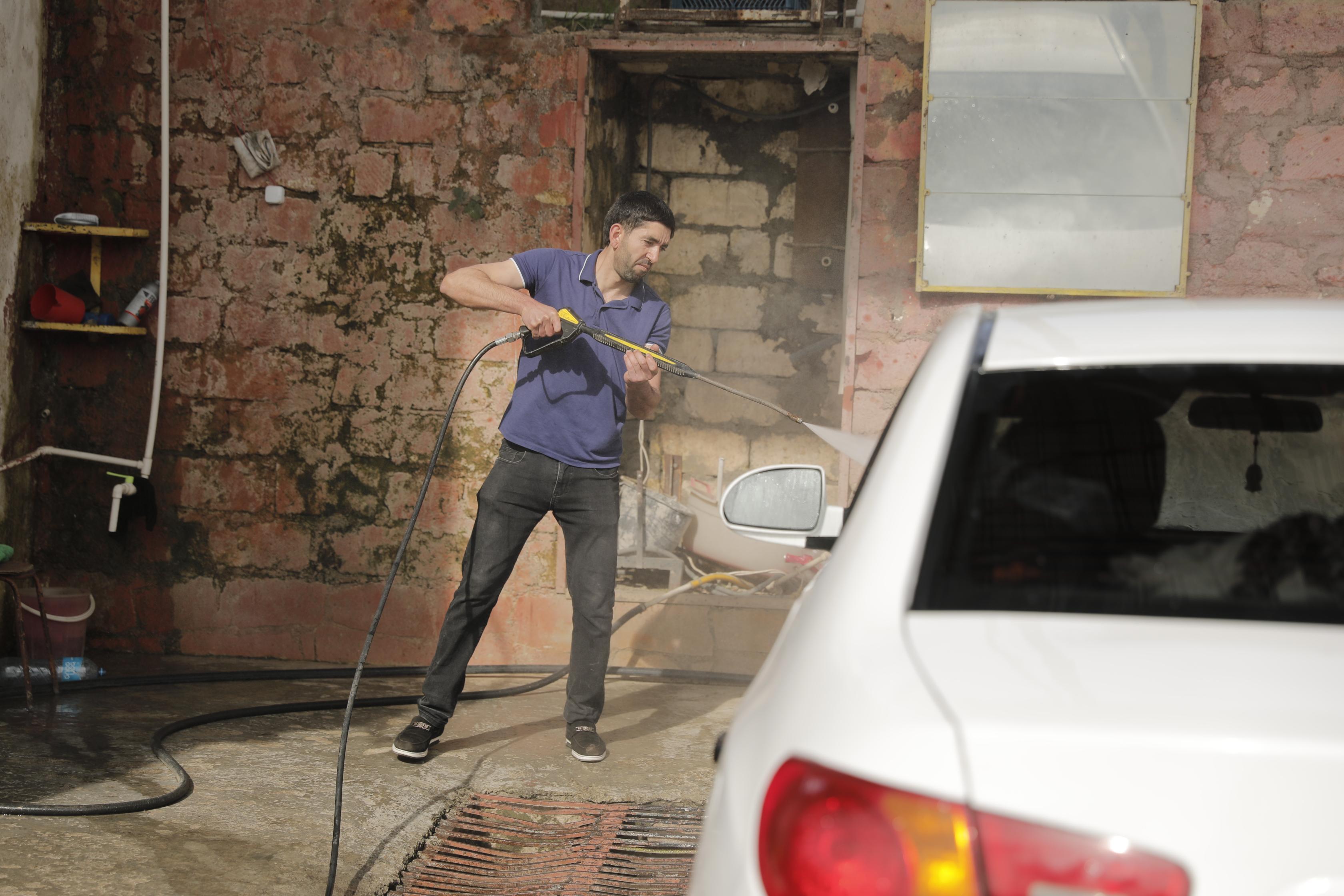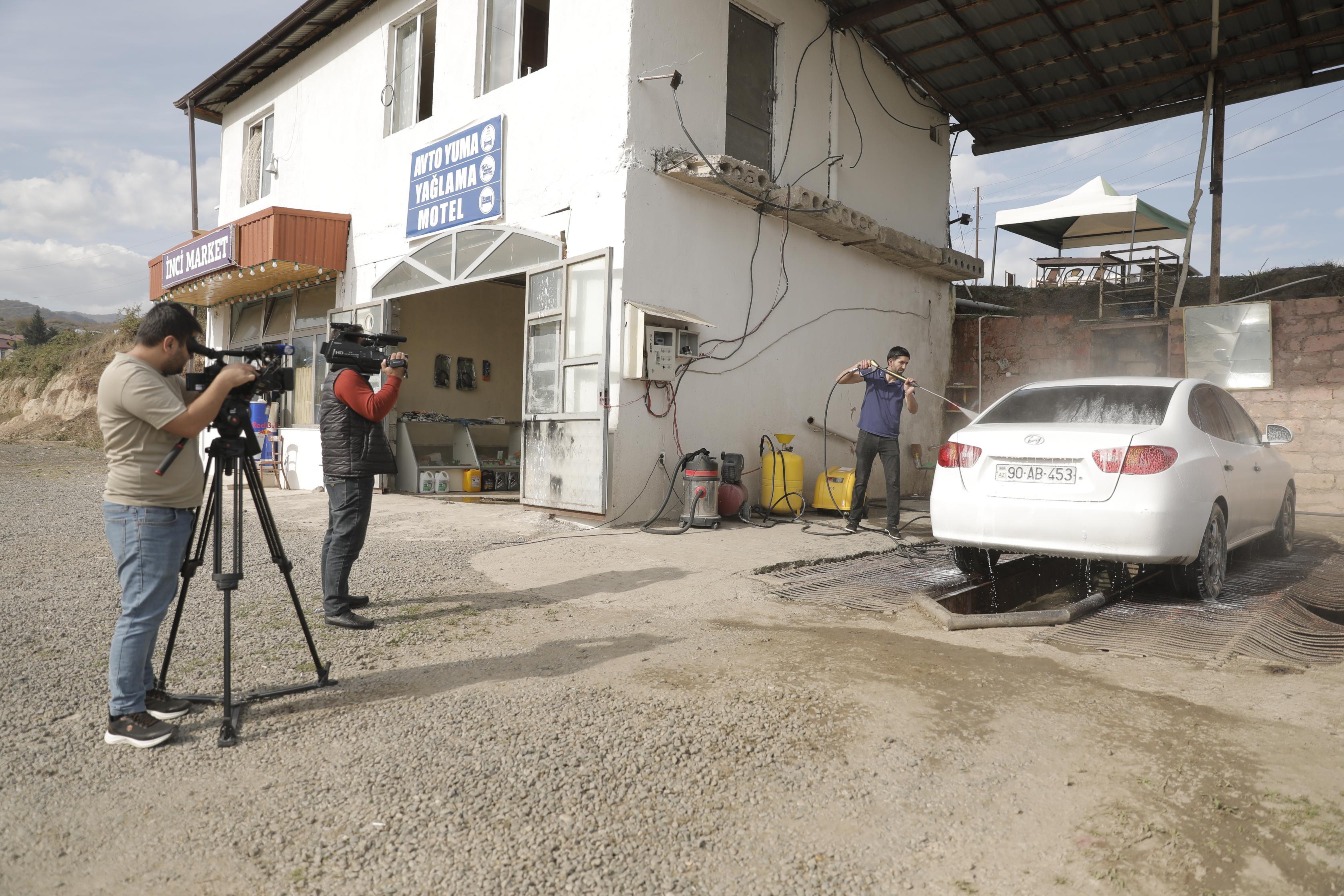 Daha sonra jurnalistlər rayonun Ballıca kənd sakini Rasim Əliyevin xidmət sahəsi ilə tanış olublar. O, özünüməşğulluq proqramının dəstəyi ilə avtotəmizləmə xidməti üzrə kiçik biznes sahəsini qurub.