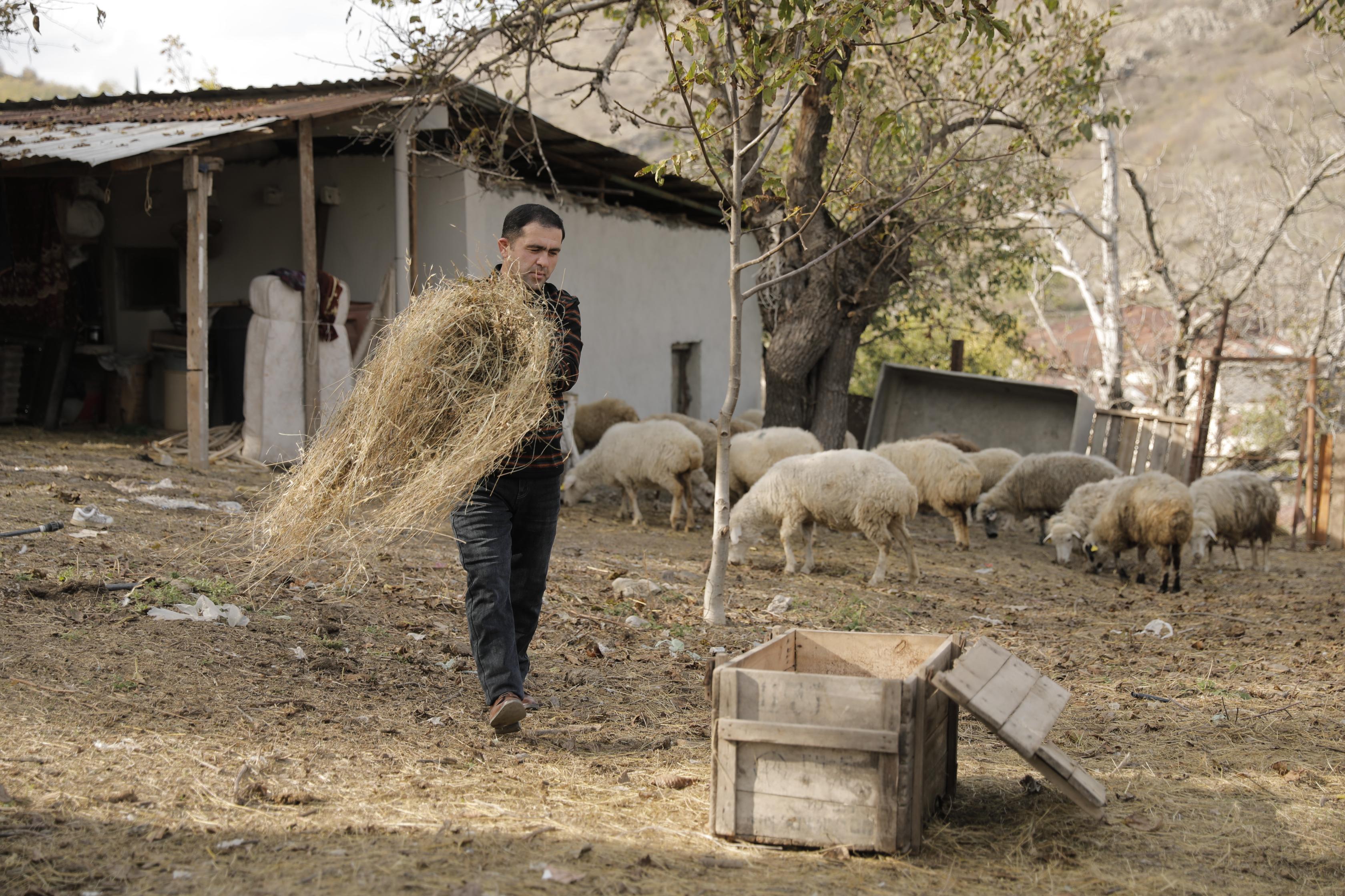 Media nümayəndələri əvvəlcə Xocalı rayonunun Xanyurdu kənd sakini Elbrus Abbasovun təsərrüfatında olublar. O, özünüməşğulluq proqramı çərçivəsində aktivlərlə təmin edilməklə qoyunçuluq təsərrüfatını yaradıb.