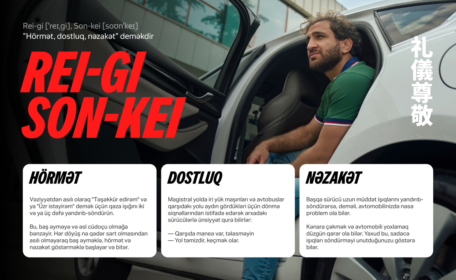 Yolda nəzakətli və təhlükəsiz davranış nümunələrinizi paylaşın və sükan arxasında hörmət mədəniyyətini dəstəkləyin.