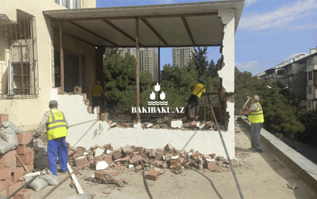 BŞİH əməkdaşları dərhal sözügedən əraziyə gedib və qanunsuz artırılan eyvanın söküntüsü həyata keçirilib.