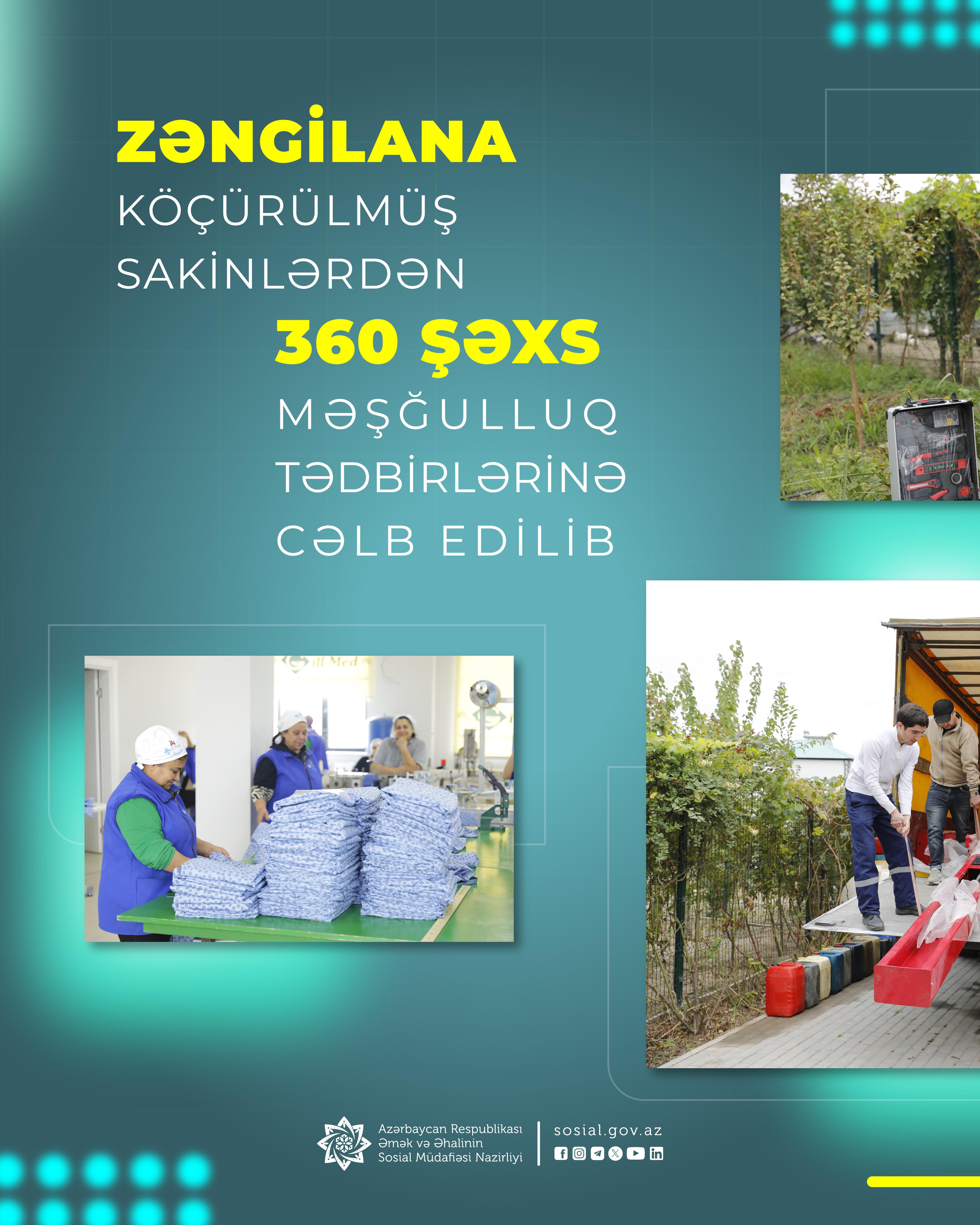 “Qafqazinfo” xəbər verir ki, həmin sakinlərdən artıq 360 şəxs məşğulluq tədbirlərinə cəlb olunub.