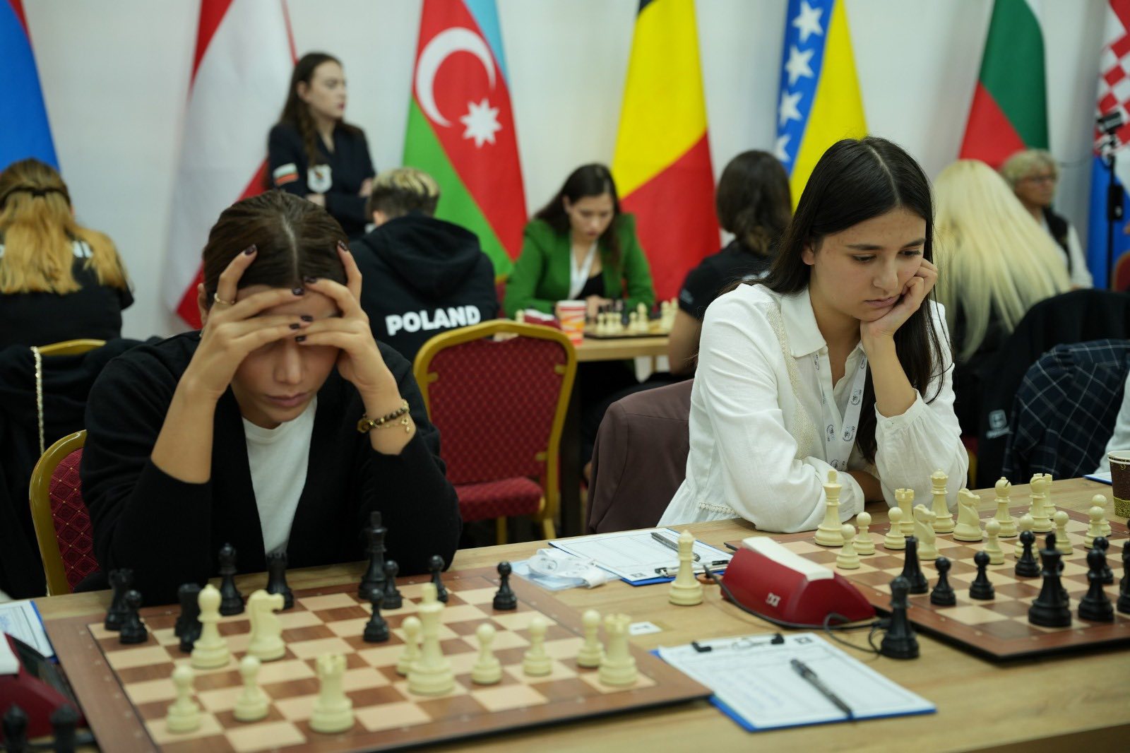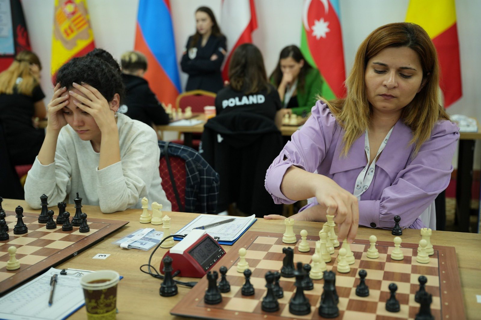 Женская сборная Азербайджана также обыграла команду Армении. Ульвия Фаталиева и Гюльнар Мамедова одержали победу над соперницами, а Ханым Баладжаева и Говхар Бейдуллаева завершили свои партии вничью. После победы со счетом 3:1 количество очков женского коллектива достигло 8.