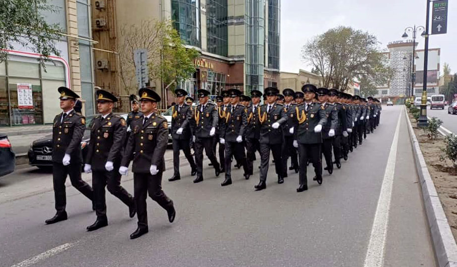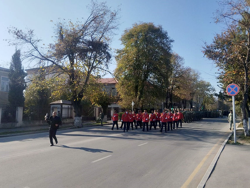По случаю пятой годовщины Дня Победы на центральных улицах, проспектах и площадях в Баку, Сумгаите, Нахчыване, Ханкенди, Шуше и Лачыне были организованы шествия под аккомпанемент военных оркестров.