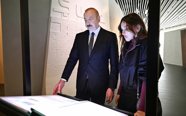 Президент Азербайджанской Республики Ильхам Алиев и первая леди Мехрибан Алиева посетили мемориал Победы в Баку и приняли участие в открытии Музея Победы.