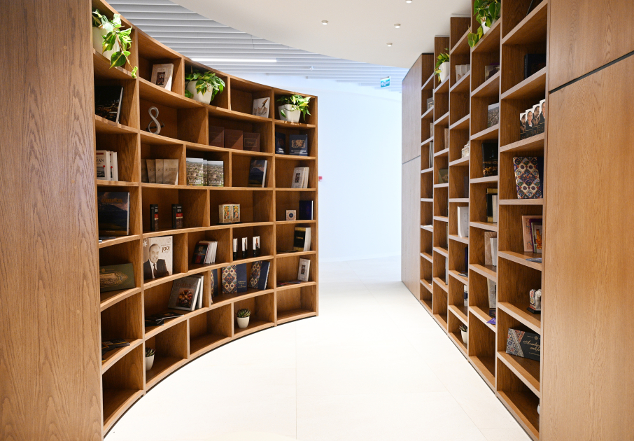Первый зал музея под названием “Карабах и Восточный Зангезур. История веков” знакомит с красотой природы, историко-архитектурным богатством Карабаха – колыбели азербайджанской культуры. Книжные инсталляции на стене зала содержат обширную информацию о вкладе Общенационального лидера Гейдара Алиева в социально-экономическое развитие региона.