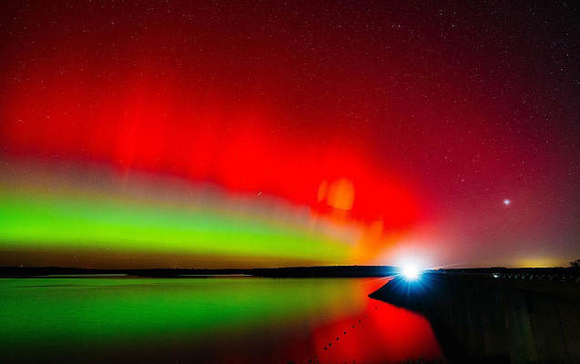 В ночь на 13 ноября в результате третьей волны выбросов плазмы с Солнца произошло одно из самых интенсивных полярных сияний за последнее десятилетие. Атмосферное оптическое явление можно было наблюдать в разных частях мира.