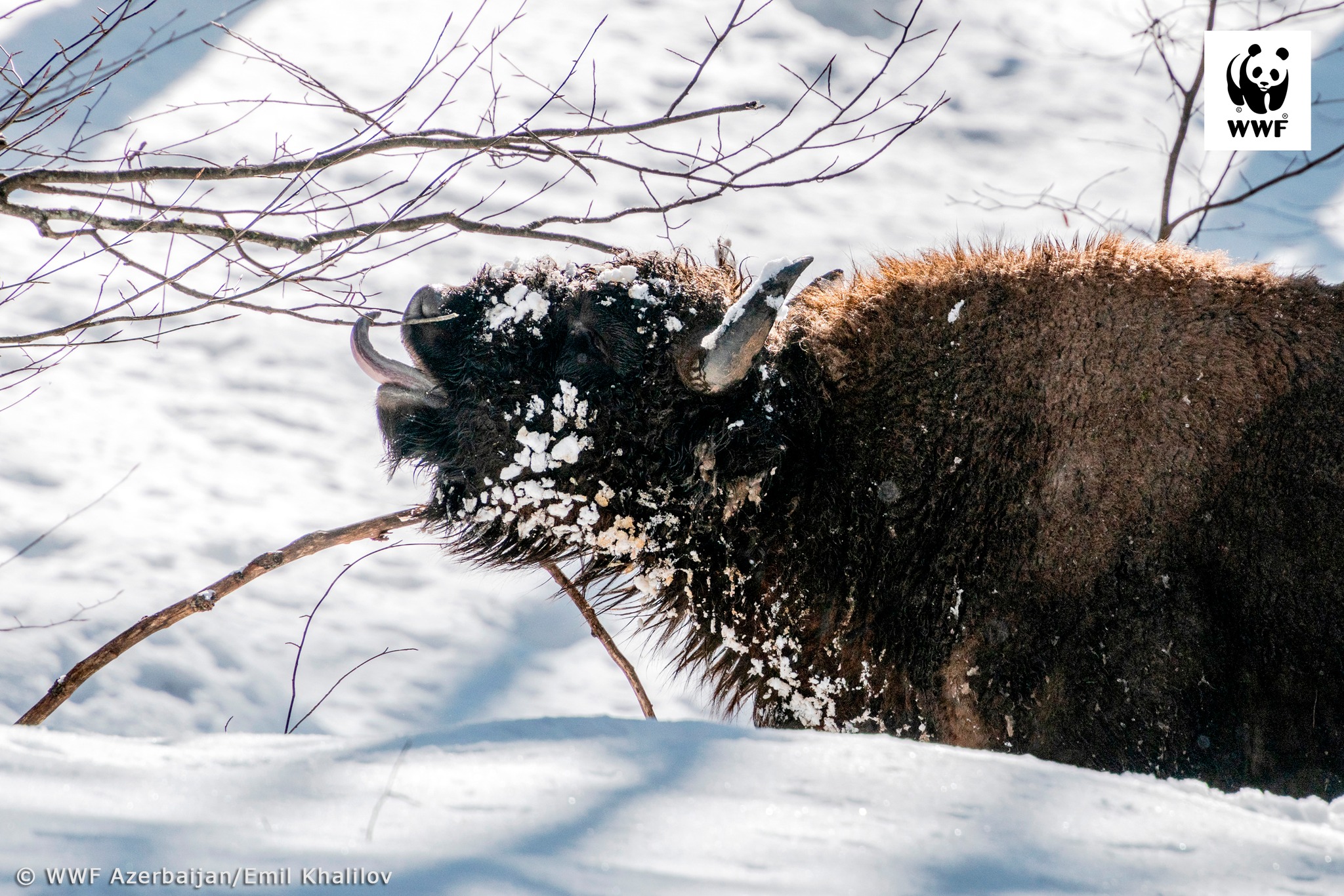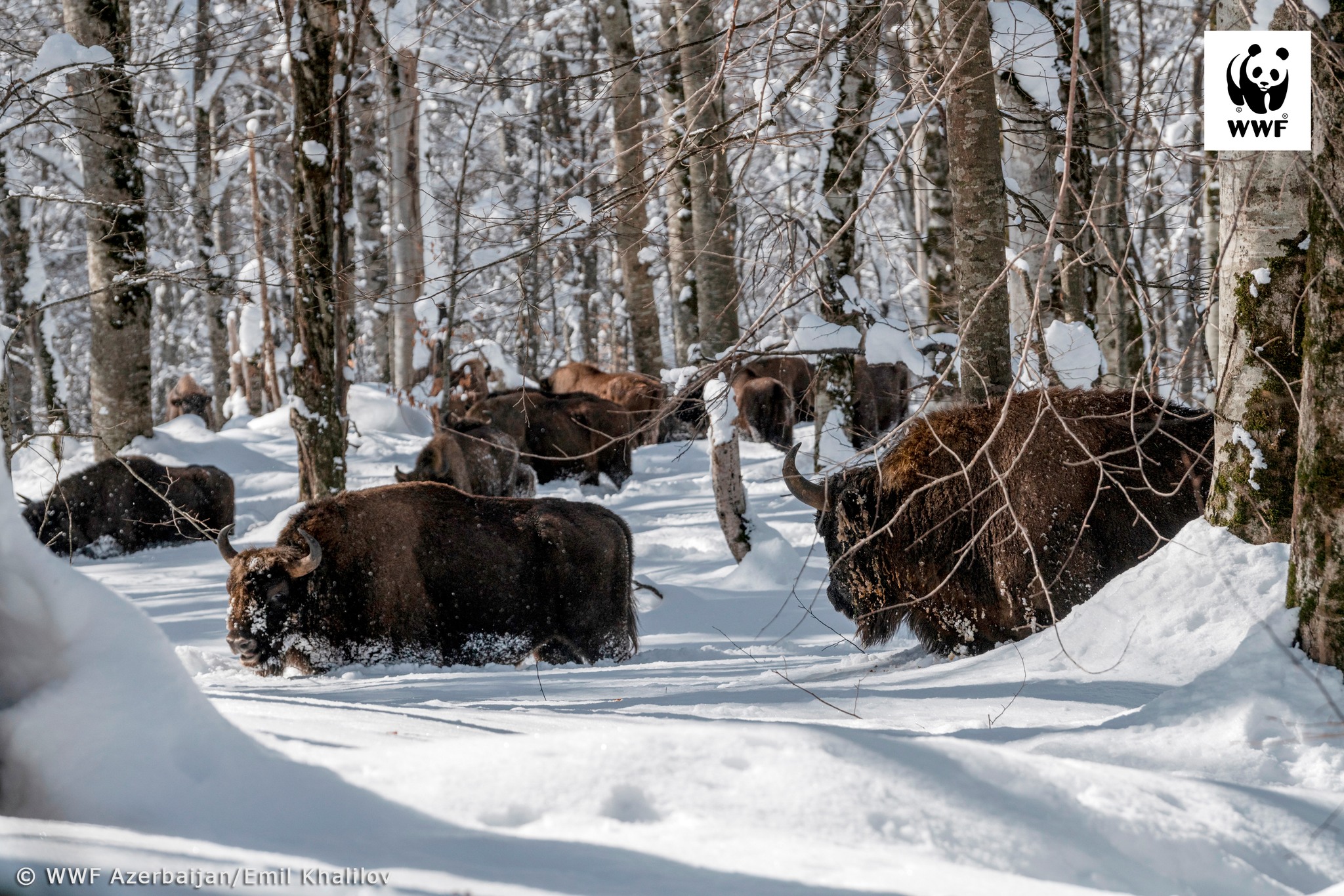 Как передает "Qafqazinfo", в кадрах, опубликованных на странице Министерства экологии и природных ресурсов в социальных сетях, запечатлены передвигающиеся по покрытой снегом горной местности величественные зубры.