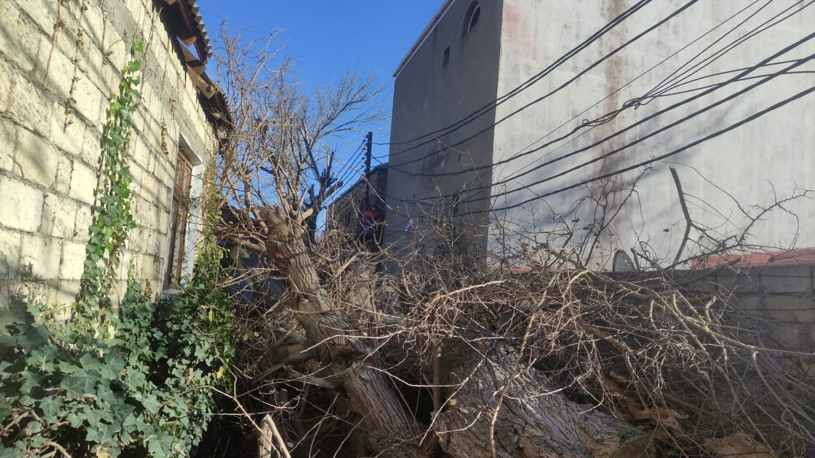 Как передает “Qafqazinfo” со ссылкой на Report, на улице Ахмеда Гасымова в поселке Баладжары Бинагадинского района столицы ветер повалил крупноствольное дерево на высоковольтную линию электропередачи.